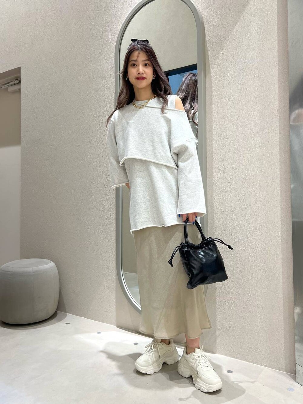 ワントーンコーデ!トップスはスウェット素材でも綺麗めなアイテムなので、幅広い系統でご着用頂けますo(^_^)o♡彡 もご覧頂けると嬉しいです〜〜!