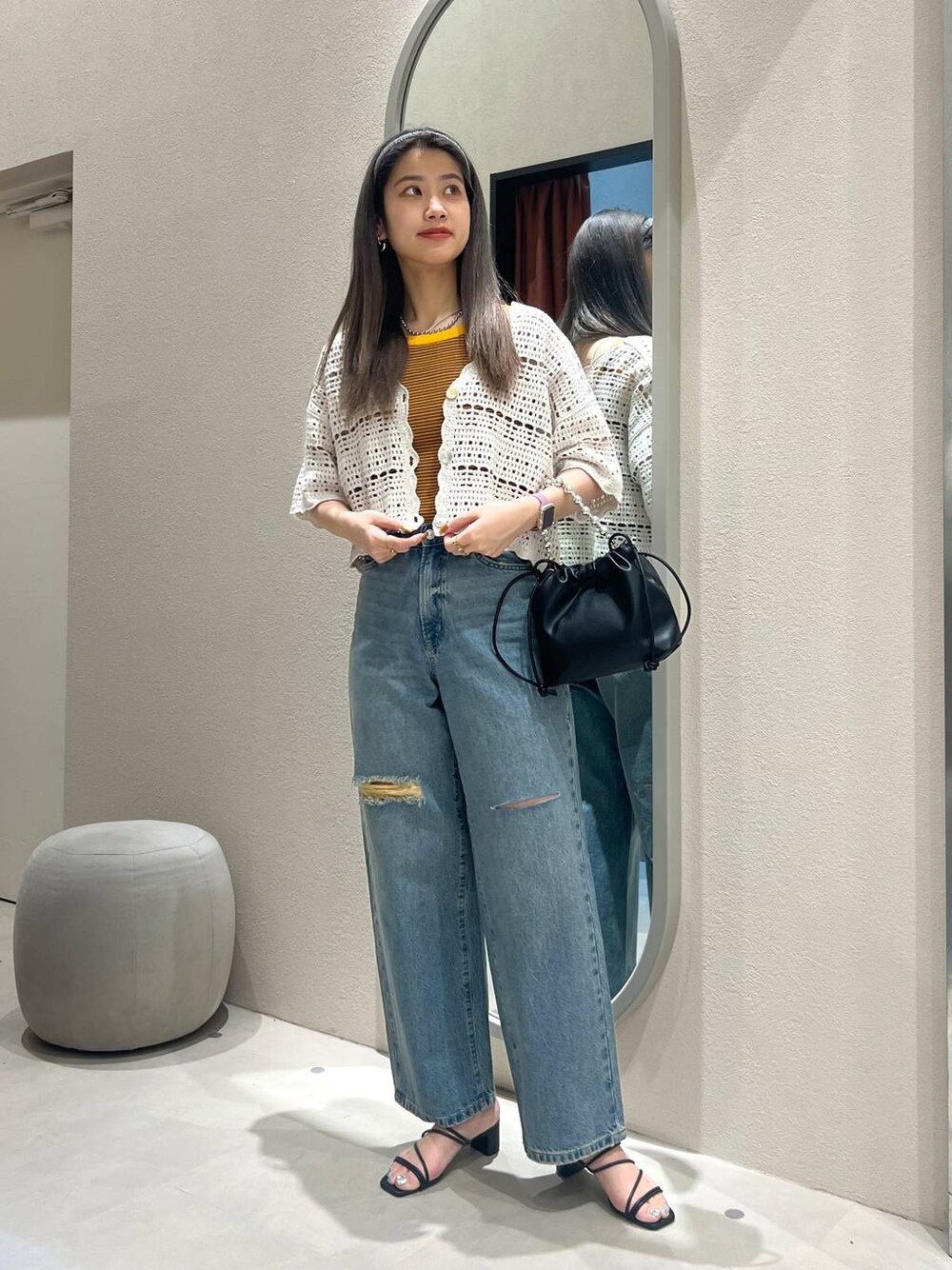 真夏も使えるカーディガンを使ったスタイリングです! インナーに差し色で使える黄色を入れて、大人っぽいスタイリングに仕上げました🍊♡ こちらのデニムはストレートなので、オーバーサイズのトップスもご着用して頂きやすいです🫶🏿 も毎日更新中!良かったらご覧頂けると嬉しいです!