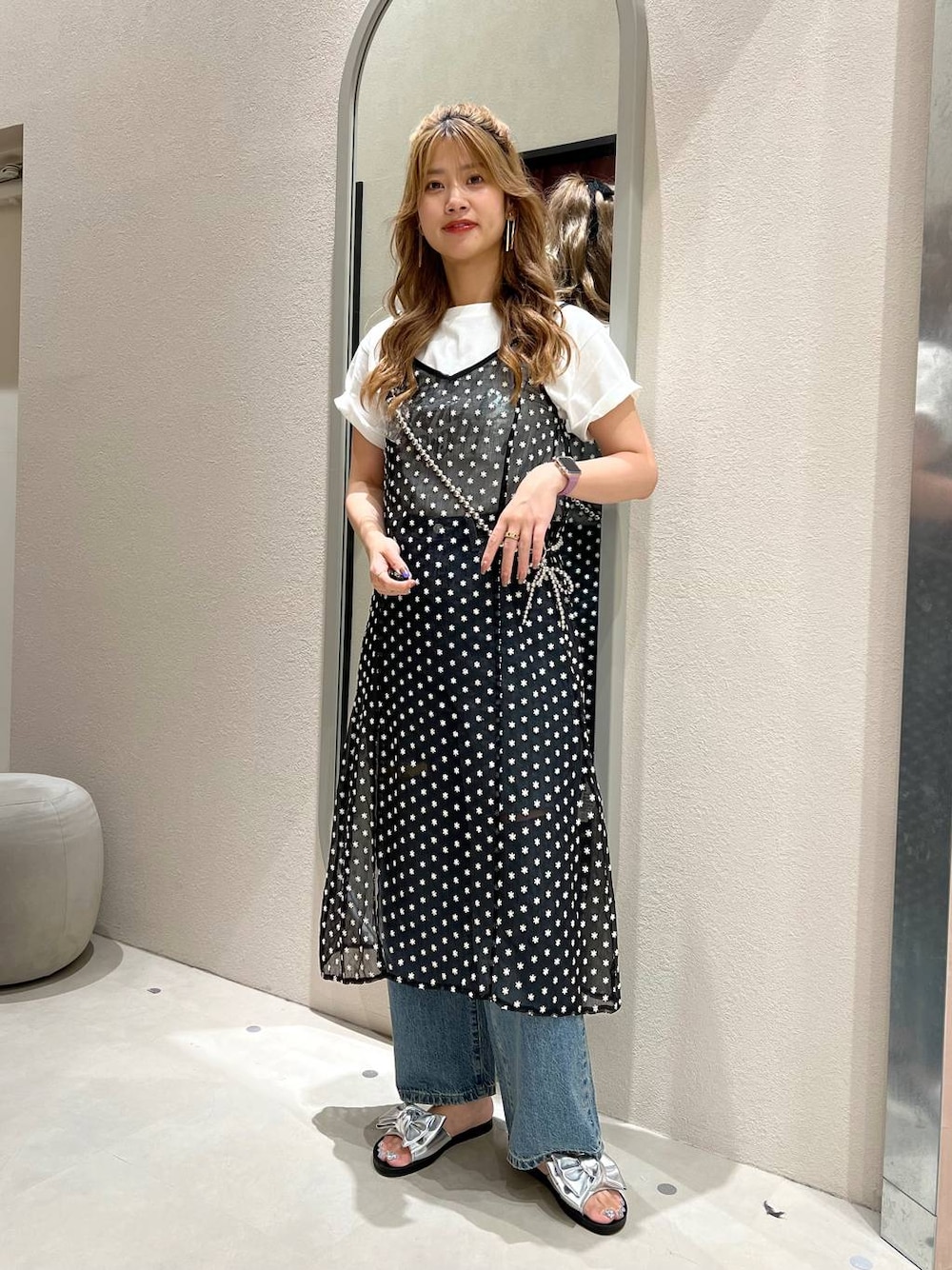 新作のキャミワンピースを使ったスタイリング 🎀 .ᐟ こちらは花柄です♡ スリットが入っているデザインなので、デニム合わせでも女性らしく仕上がります♡ こちらはInstagramにも投稿してます( ᴗ ̫ ᴗ )🌸 も毎日更新中!良かったらご覧頂けると嬉しいです!