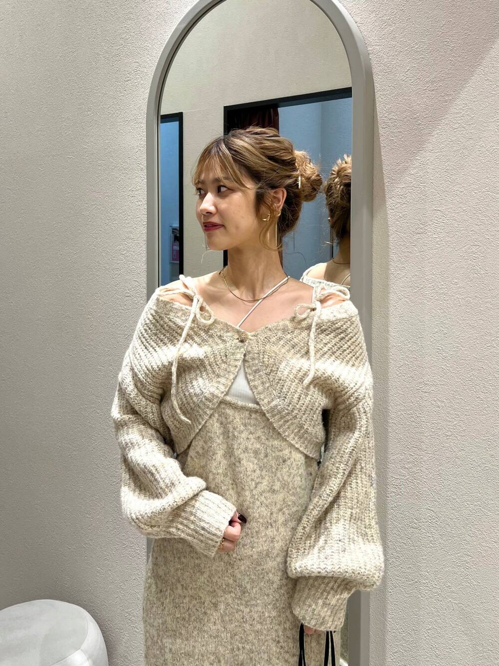 ご覧頂きありがとうございます🫧 先日の店頭コーディネートです🧸🧺アイボリーも透け感なくお使い頂けるので、中のキャミワンピースのみでも着用可能です🤍⿻ 3色どれも可愛くて、色んな系統の方が着用して頂けます!また、肩のリボンの部分で調整でき、色んなご身長の方が挑戦出来るアイテムです! も毎日更新中🪔♡ 良かったらご覧頂けると嬉しいです!