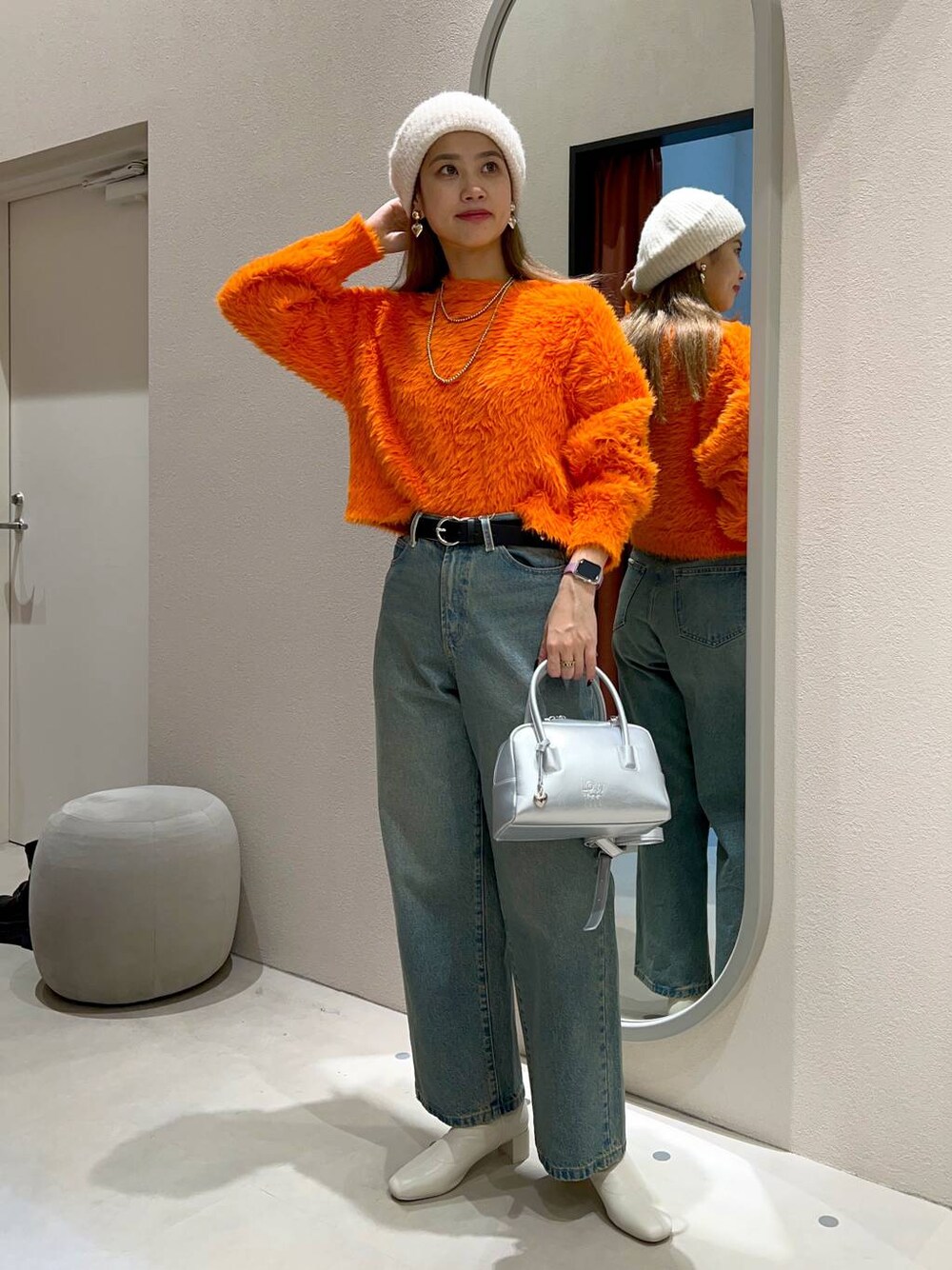 ご覧頂きありがとうございます🫧 大人の方でも着用しやすいカラーを使ったスタイリングです👶🏻🫶🏿 毛足の長いニットアイテムで、肌触りが良く、綺麗めに使いやすい♡ またデニムを落ち着いた色味なので、カラーがぱきっとし過ぎず、色物にも合わせて頂きやすいです♡ も毎日更新中〜🌠 良かったらご覧頂けると嬉しいです!