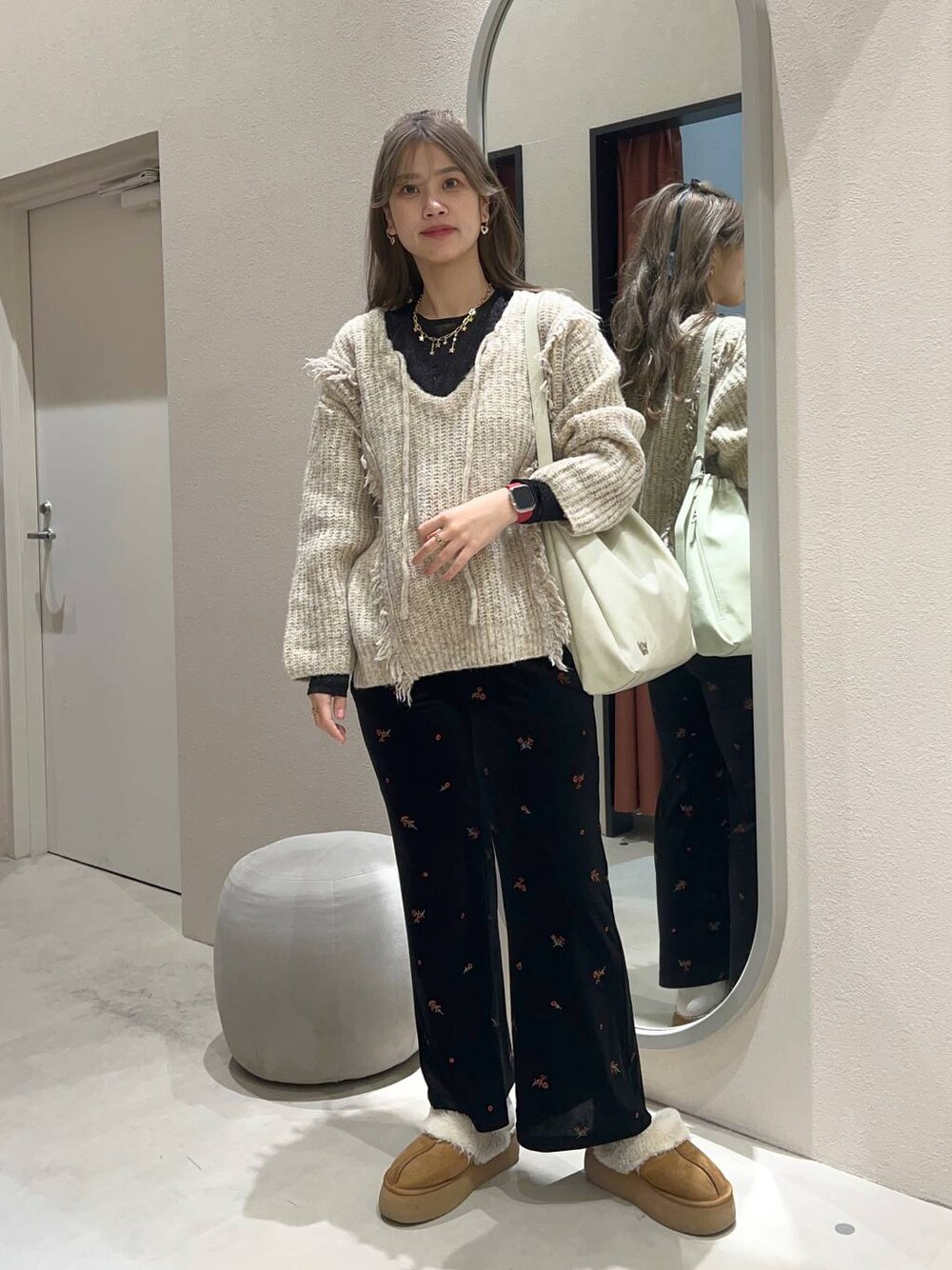 アヤミ(LOWRYS FARMイオンモール広島府中)のニット/セーター「2WAYフリンジメランジLS 116690」を使ったコーディネート