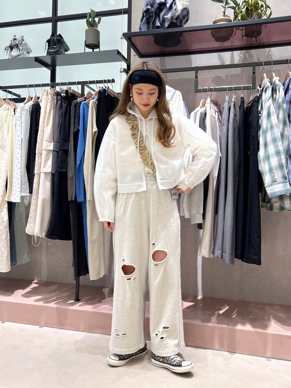 アヤミ(LOWRYS FARMイオンモール広島府中)のスウェットパンツ「リメイクスウェットワイドパンツ 288665」を使ったコーディネート