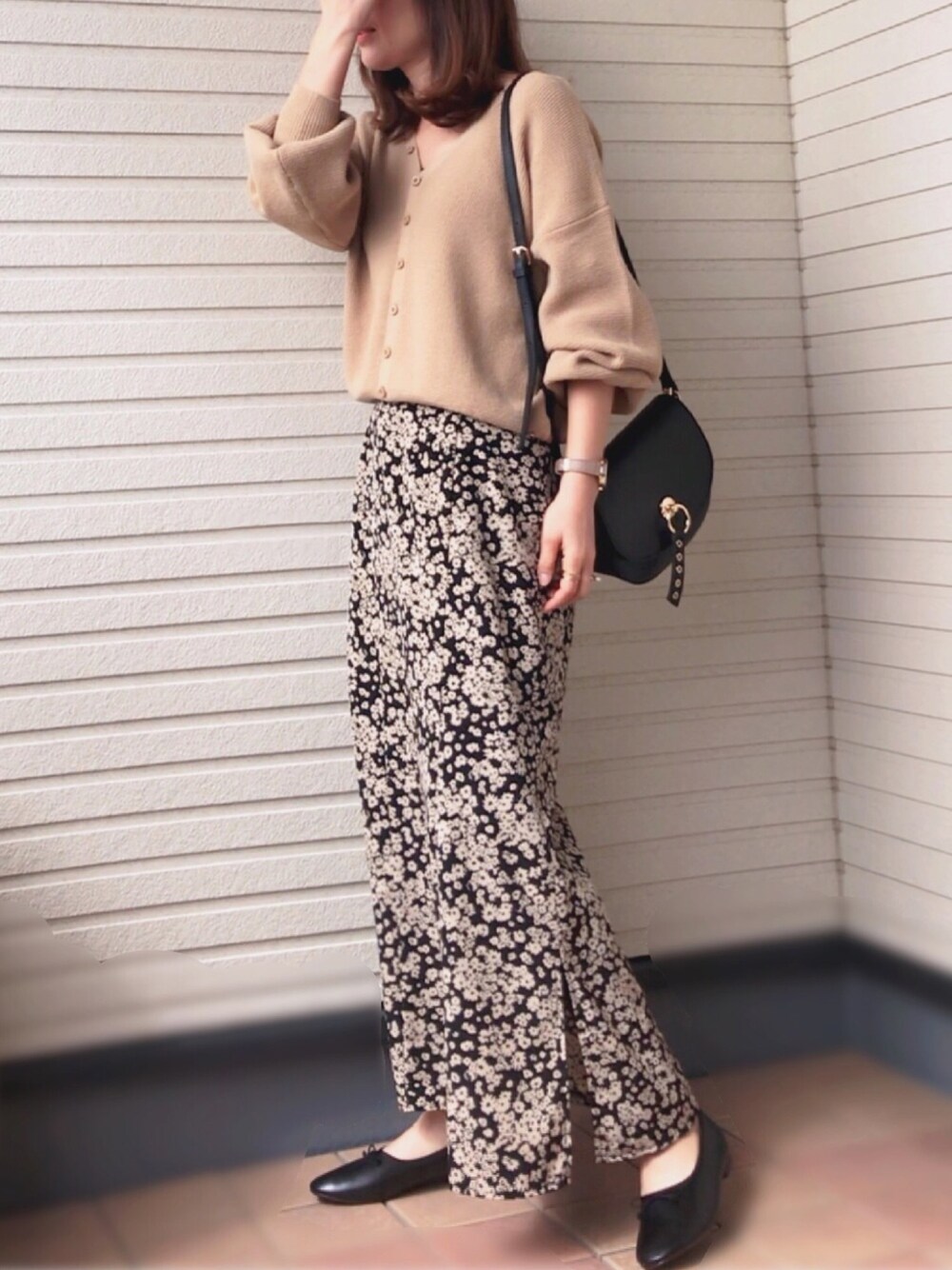 小花柄で甘いかなと思いましたが、 マーメードっぽいシルエットなので、 大人めに合わせられます✨