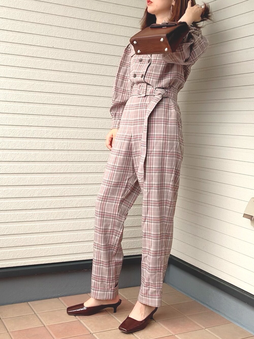 lissi boutiqeさんのチェックオールインワンを着用させていただきました✨ 色合いが落ちついて、着心地も良きです 何よりデザインがめっちゃ可愛い😍 今季のおすすめアイテムだそうです✨