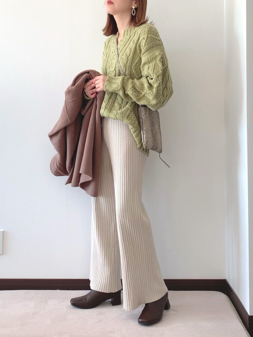 紗衣のニット/セーター「【WEB限定】キーネックケーブルニット」を使ったコーディネート