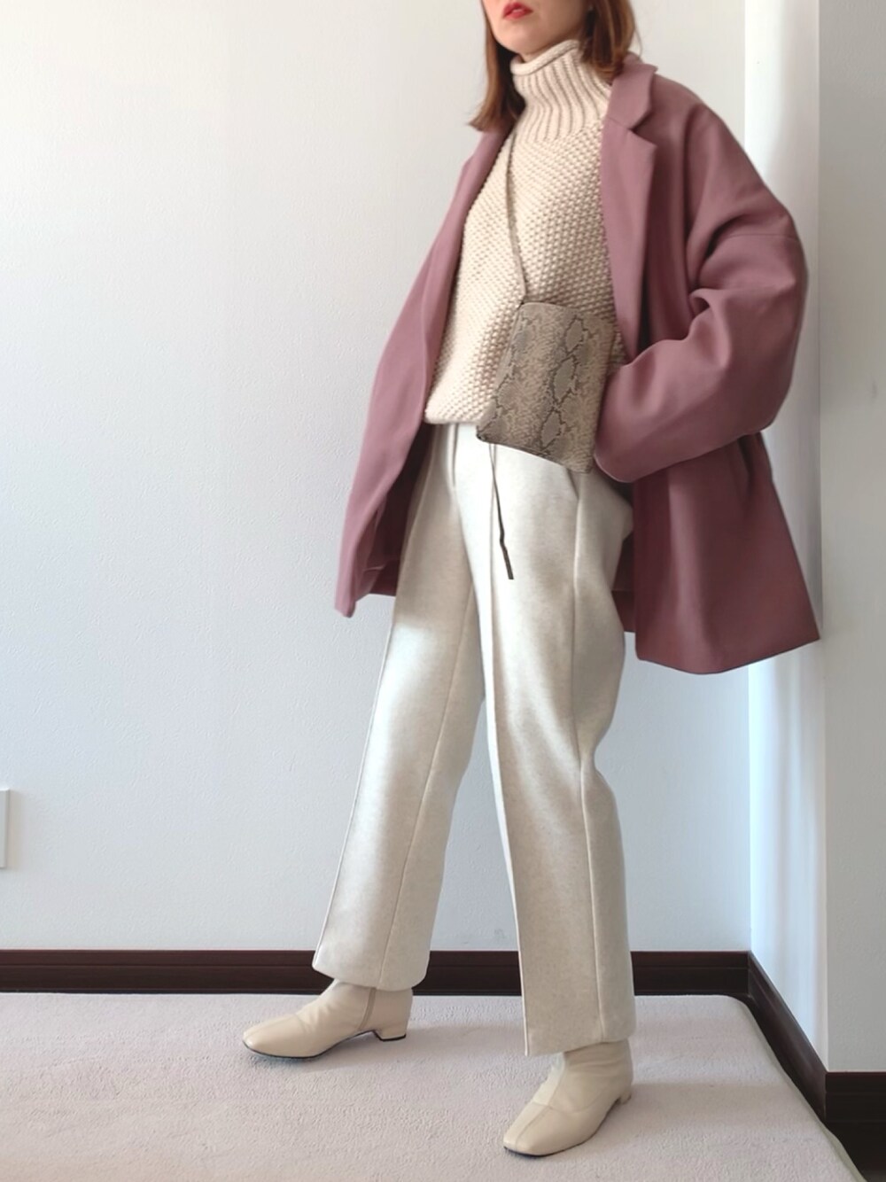 ボリュームニットに合わせても、ビックシルエットなので、スッキリ着れるテーラードジャケットが良きです◎