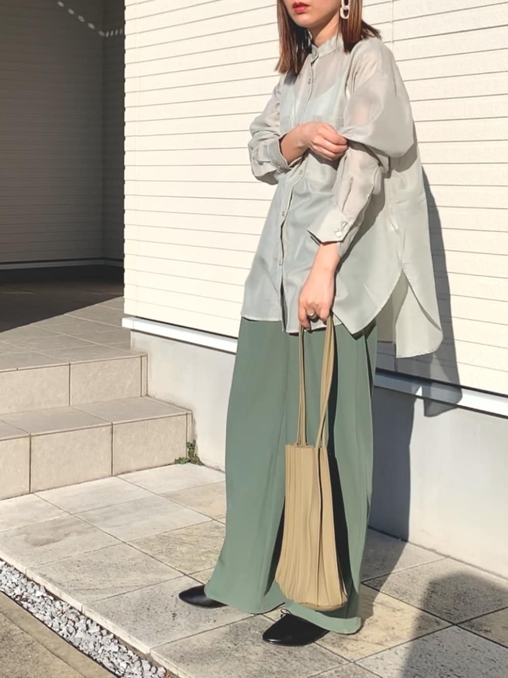 気づいたら、グリーンのワントーンコーデ🥑 陽射しが強かったので、加工せずの明るさ✨