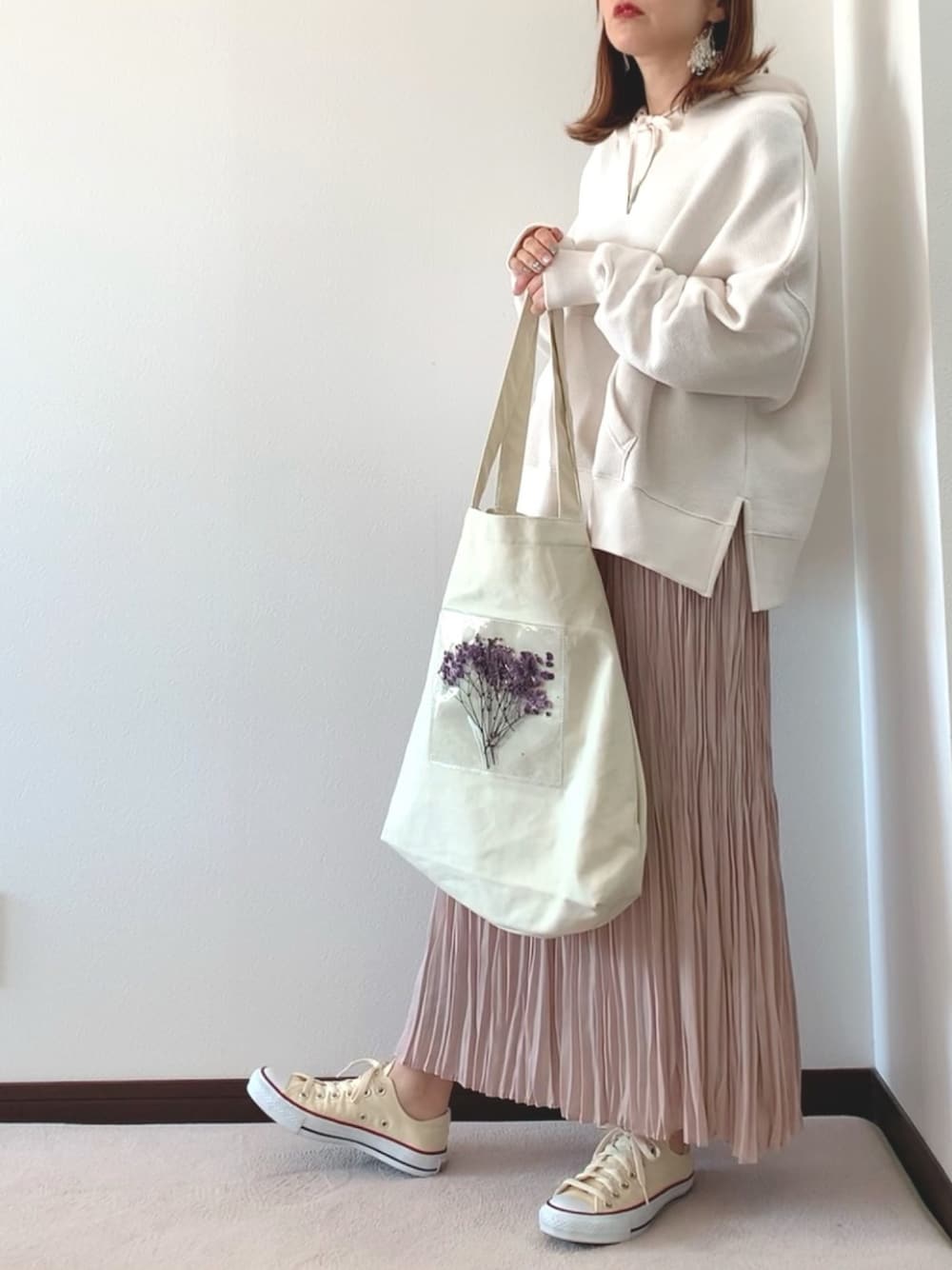 上下Ambre neigeさんの、アイテムです。 パーカーは柔らかい素材でとても着やすいです。 プリーツも春らしいくすみピンクなので 合わせやすく良きです。