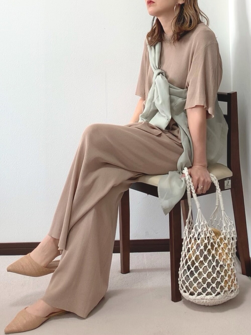 紗衣のセットアップ「コットンニットチュニックセットアップ」を使ったコーディネート