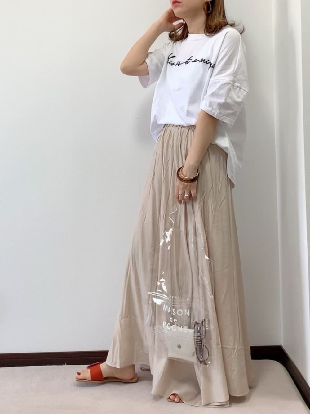 紗衣のTシャツ/カットソー「筆記体刺繍半袖 ロゴT」を使ったコーディネート