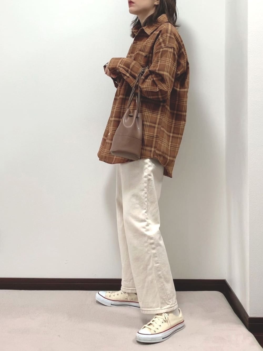 紗衣のシャツ/ブラウス「MONO-MART×KANGOL カンゴール 別注 オーバーサイズ チェックフランネルシャツ/レギュラーカラーシャツ」を使ったコーディネート