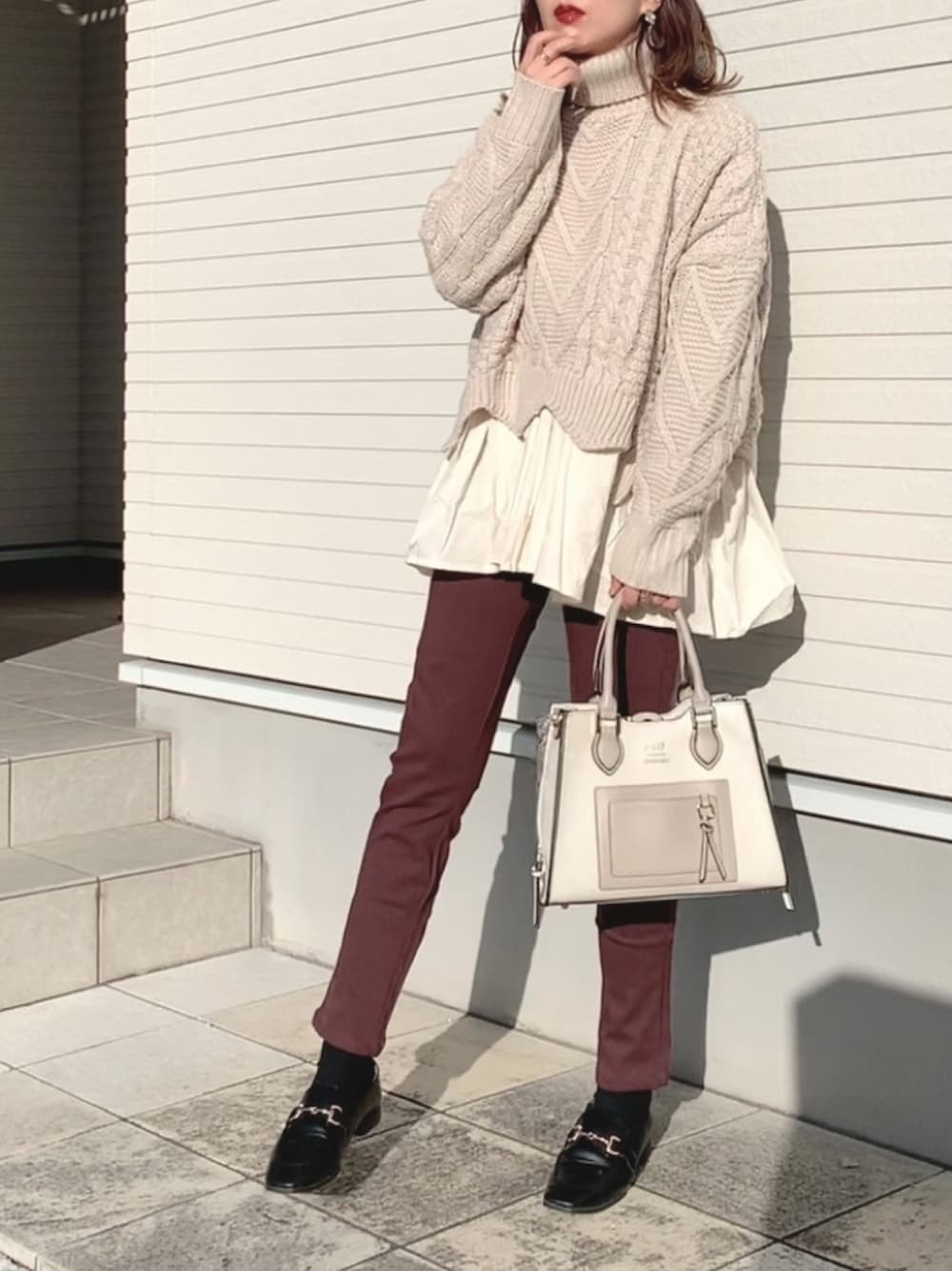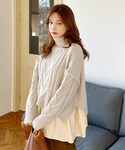 こちらも人気の、レイヤード風ケーブルニット🧶今回はタートル版で。 あったかいし、可愛いし最強です 裏起毛パンツは、細めのシルエットですが、窮屈感もなく美脚効果ありでしかもあったか✨