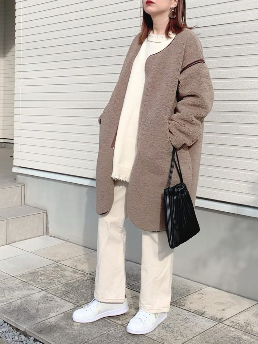 紗衣のムートンコート「WEB限定 フェイクムートン/パイピングボアコクーンコート」を使ったコーディネート