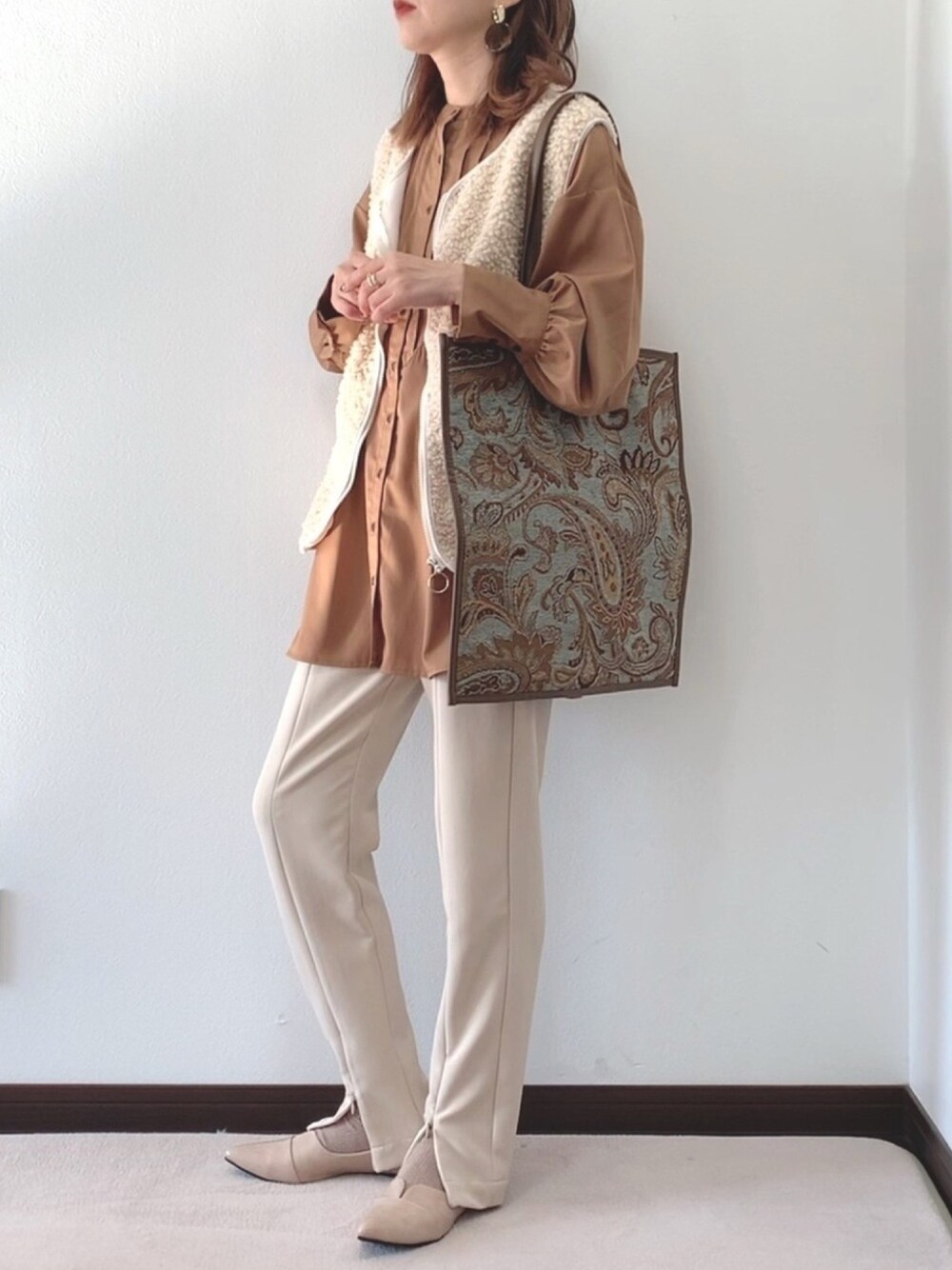 紗衣のベスト「リラックスボアベスト」を使ったコーディネート
