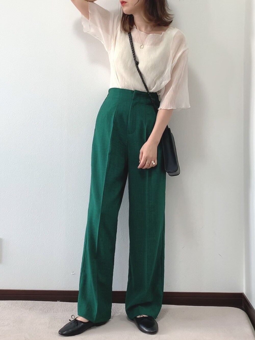 着用コーデ:357件紗衣のシャツ/ブラウス「5分袖シアーメロウブラウス(キャミ付き)」を使ったコーディネート