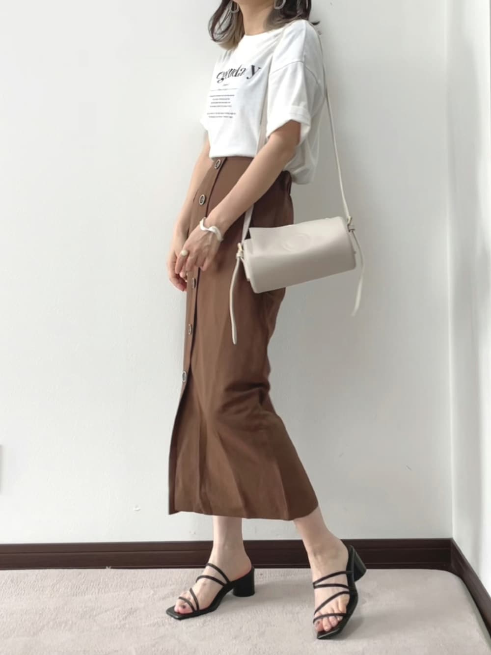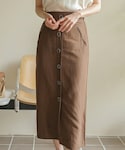 DHOLICのリネン混フロントボタンタイトスカート、スッキリしたシルエットが細見えします☺︎ フロントボタンがポイントになり可愛いです♡