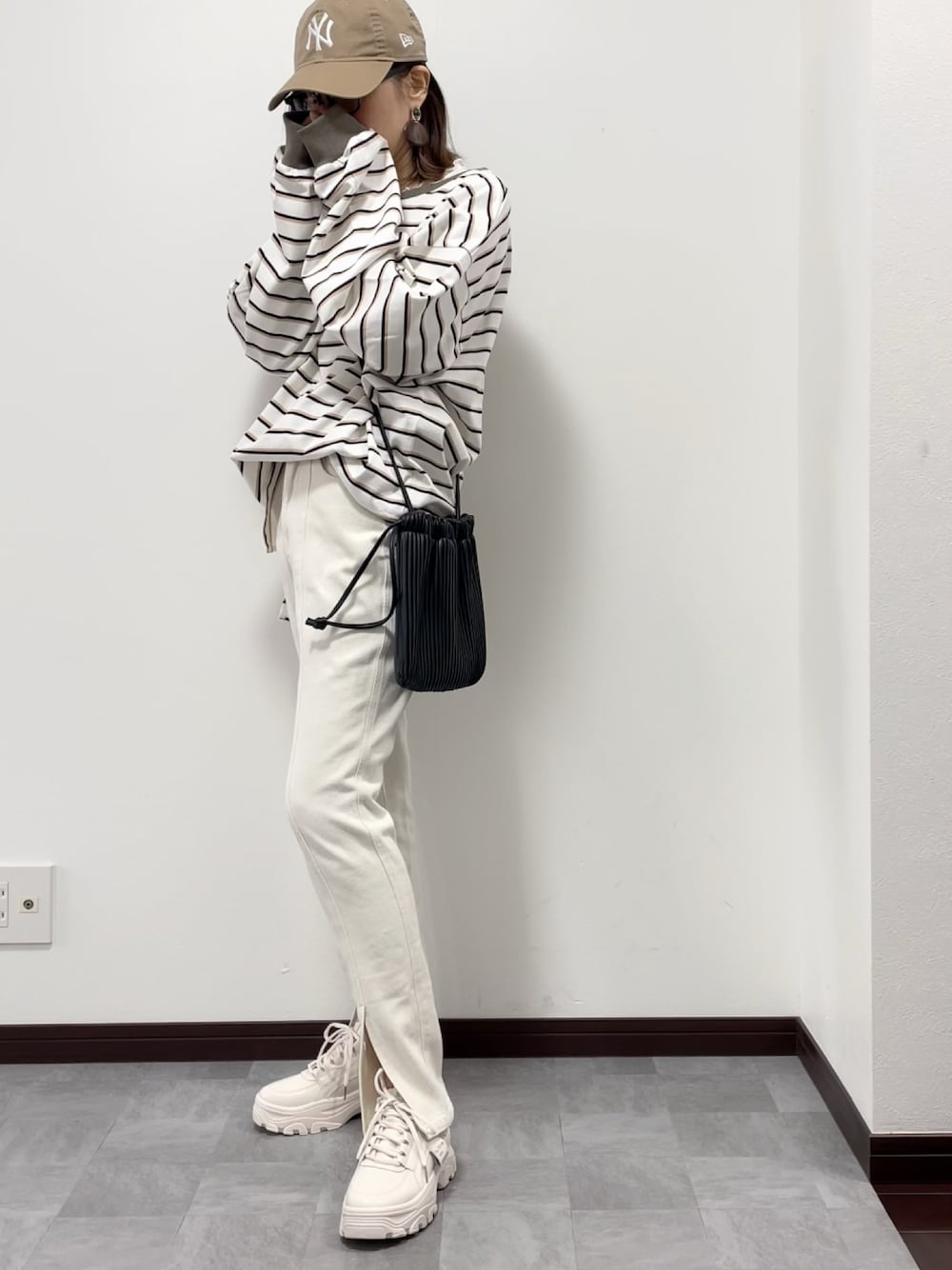 紗衣のTシャツ/カットソー「ダブルボーダーロンT」を使ったコーディネート