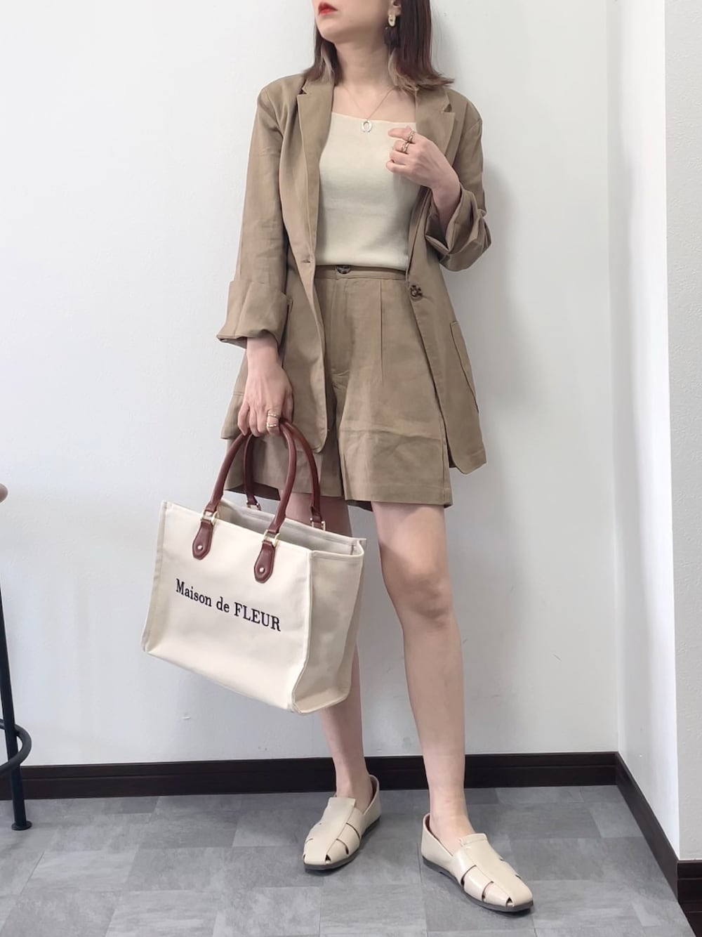 紗衣のセットアップ「リネンライクセットアップ」を使ったコーディネート