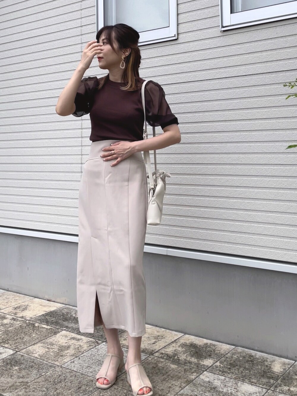 紗衣のニット/セーター「シアーハイネックニットトップス」を使ったコーディネート