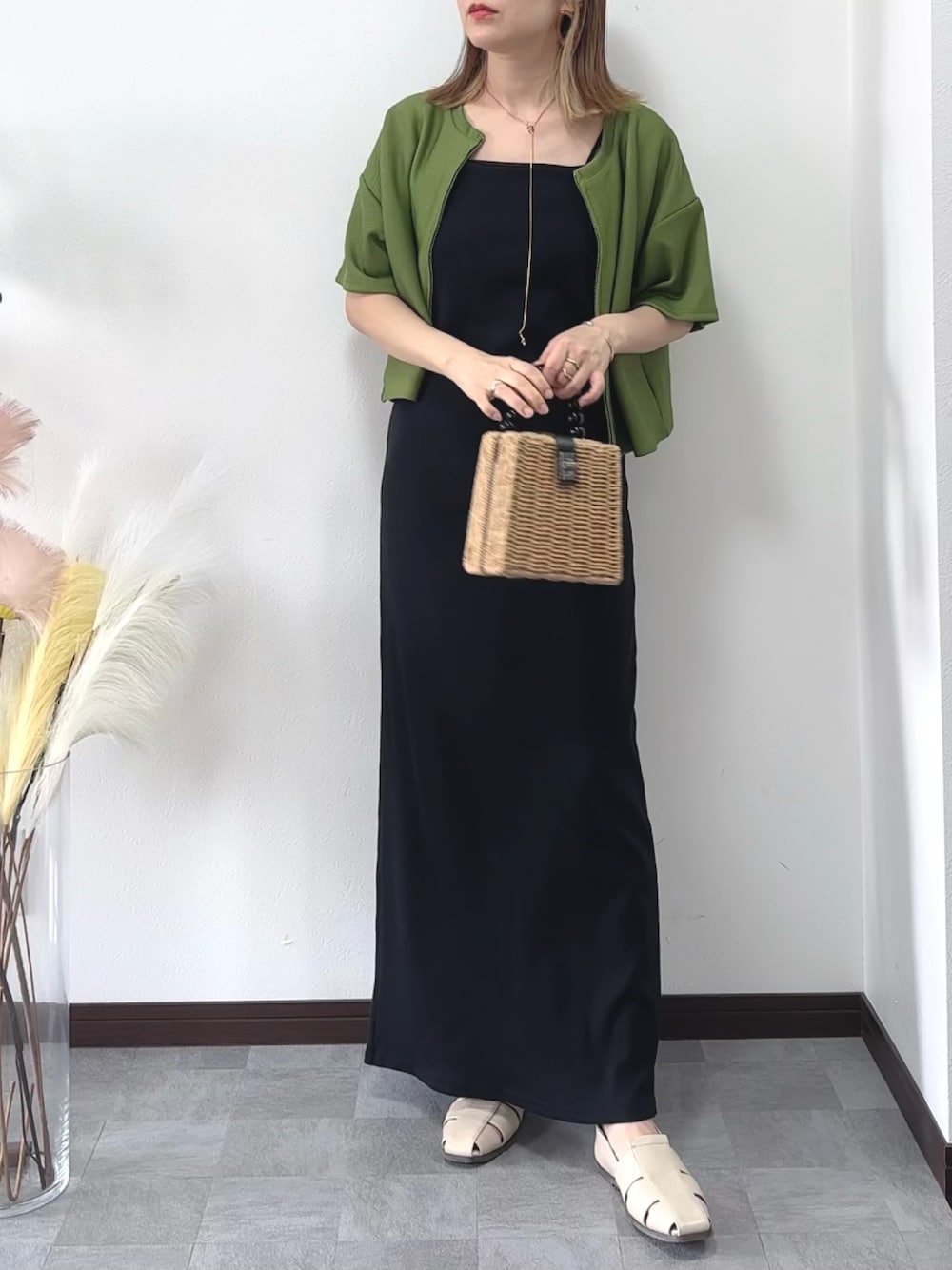 紗衣のワンピース「【TALLあり】ダブルストラップカップ付きリブキャミワンピース≪スタイルアップ≫」を使ったコーディネート