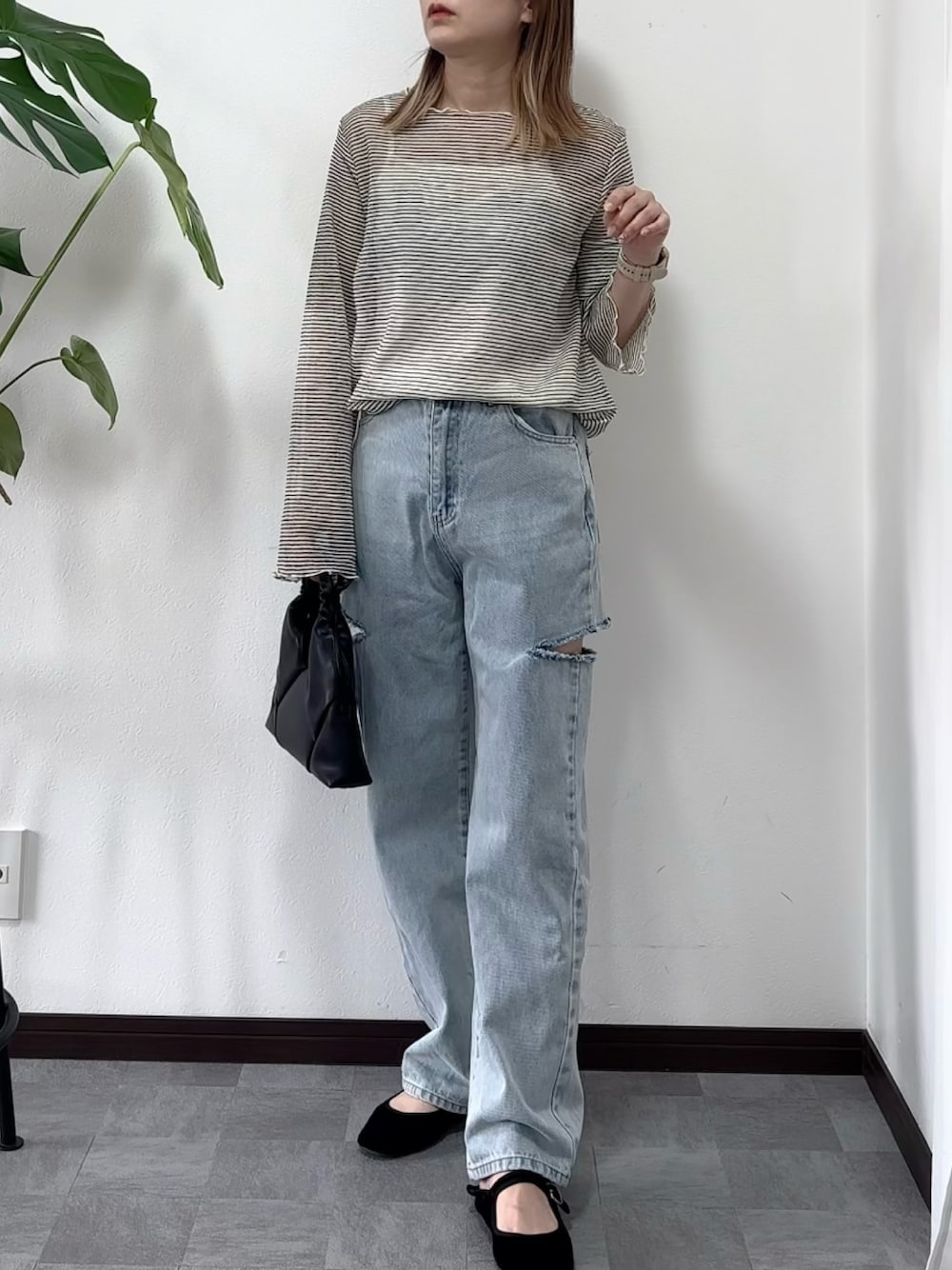 紗衣のTシャツ/カットソー「シアーボーダーロンT×キャミセット」を使ったコーディネート