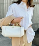 •••PR••• 【Emma taylor】 パール釦オーバーサイズシャツ 大人な色見のストライプとパールボタンが上品な印象に★ 1枚で着ても、寒い時期はニットにINしても、暖かい時期は羽織としても使えるオールシーズン万能アイテムです