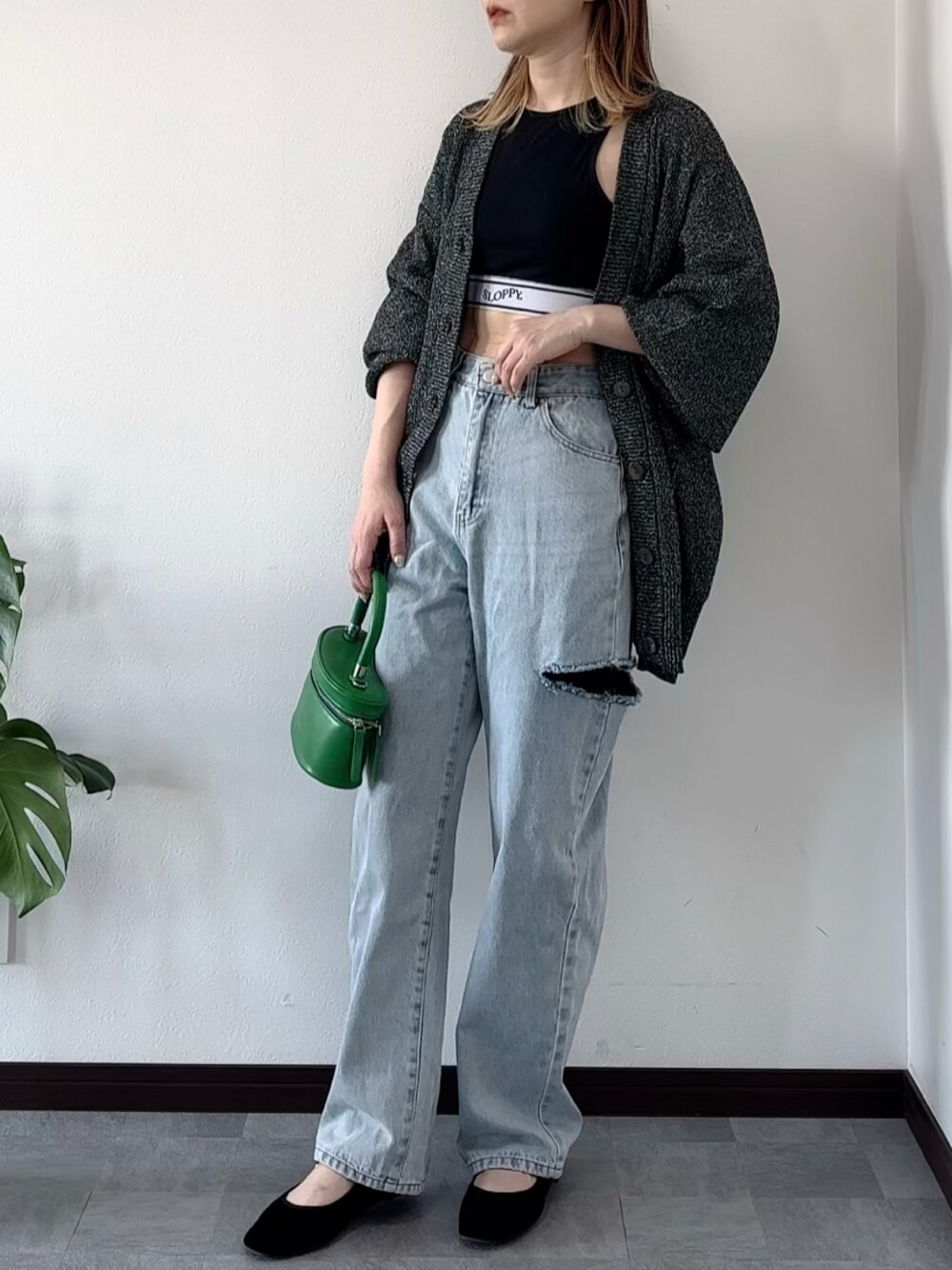 紗衣のカーディガン/ボレロ「【ラメシアー登場】変わり編みシアーBIGカーディガン」を使ったコーディネート