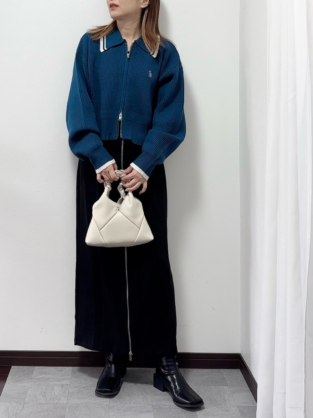 紗衣のニット/セーター「【2025AW新色登場】ライン衿ジップブルゾン」を使ったコーディネート