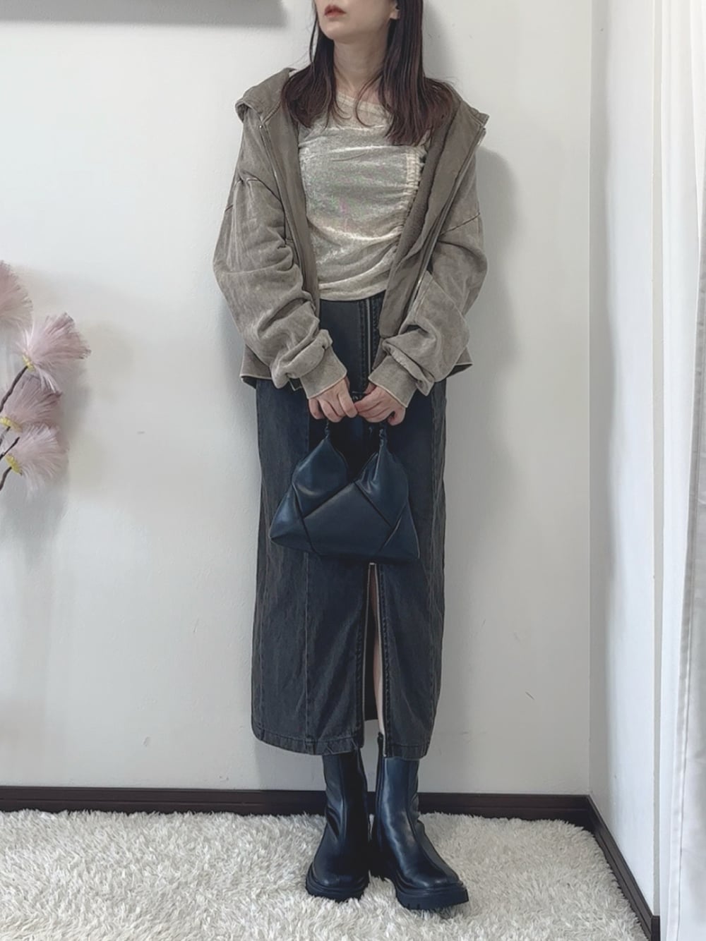 紗衣のパーカー「ヴィンテージ加工ダブルジップパーカー」を使ったコーディネート
