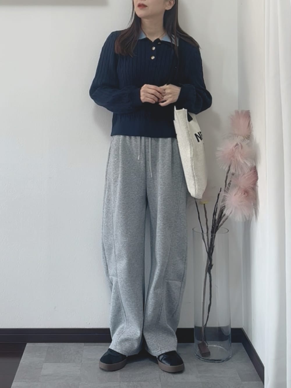 紗衣のニット/セーター「【選べる2デザイン】ケーブルニットポロプルオーバー」を使ったコーディネート
