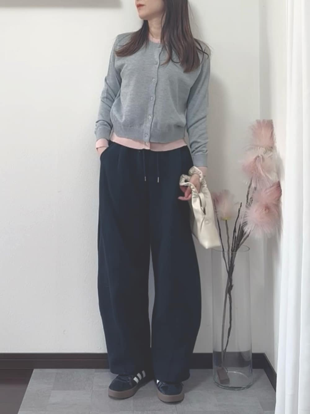 紗衣のカーディガン/ボレロ「配色レイヤードクルーネックカーディガン」を使ったコーディネート