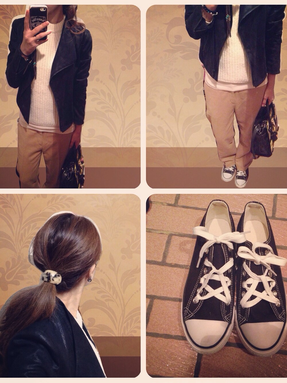 ライダース#ユニクロ ニット#SLY パンツ#マカフィー