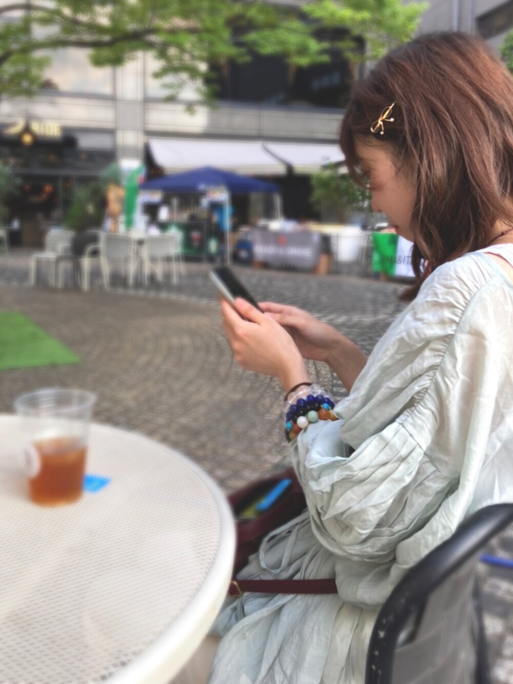 3年前先輩とご飯行った時のコーデです。 5分袖で透け感があるから、春夏秋の初めぐらいまで着れるのでとても利用してます✨ フレアパンツと一緒に合わせるとスタイル良く見えます☺️