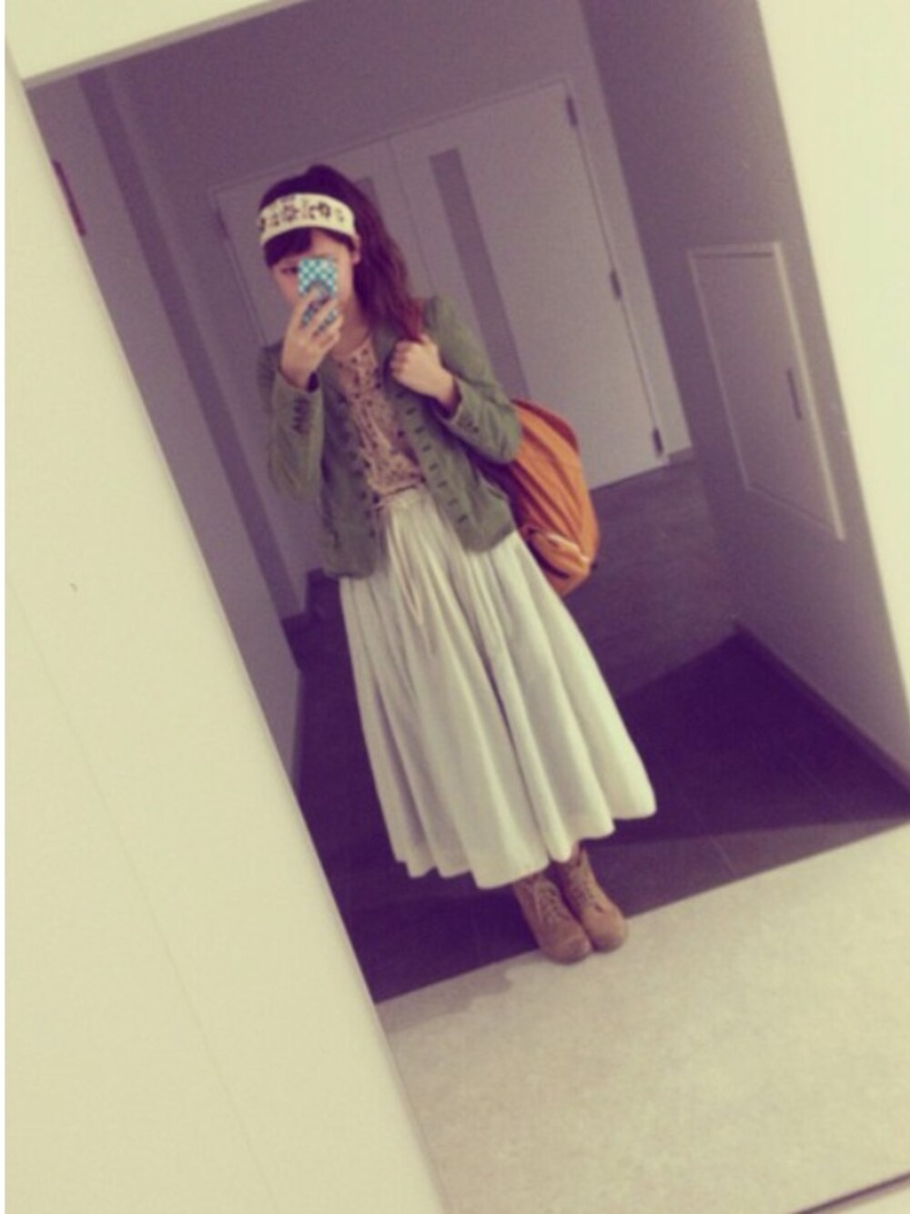 オレンジ系のバックパック/リュックを着用したレディースの春コーディネートの1枚目の写真
