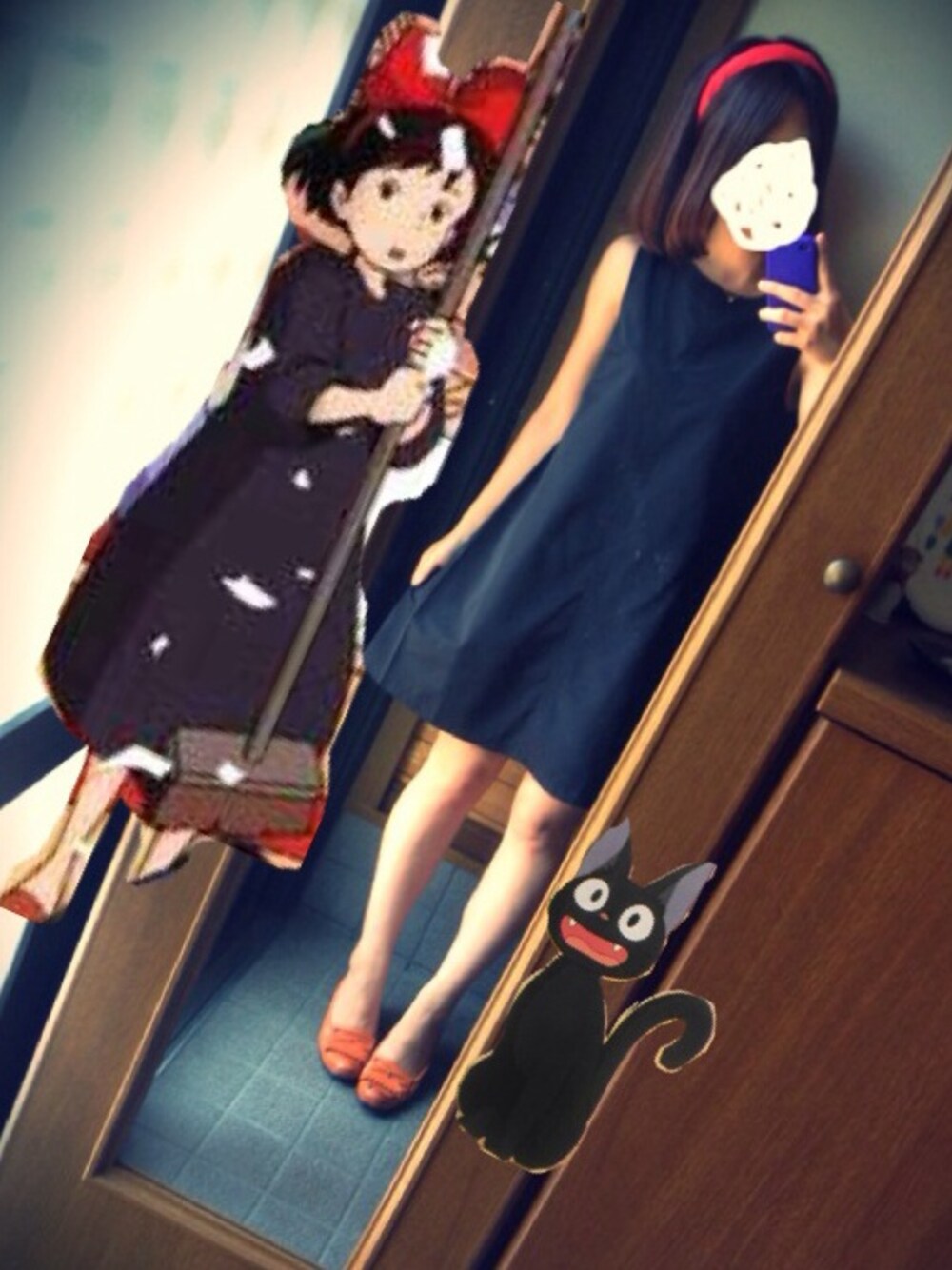 昨日アップしたワンピースで、魔女の宅急便のキキの真似☻ ジブリの中で一番好きなやつ☻ 二番目はもののけ姫☻ 以上!!!