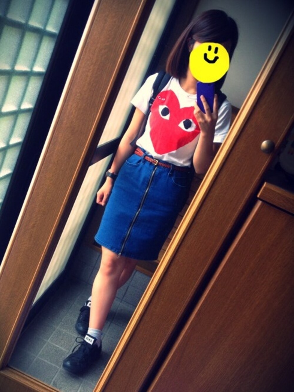 トップス:コムデギャルソン スカート:COQULE 靴:コンバース 鞄:グレゴリー 時計:NIXON 友達の誕生日にお揃いでかったTシャツ! 学校行くのでリュックスタイル〜(°_°)