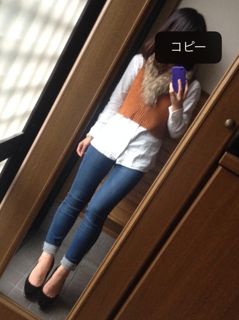 シャツ:polo ralph lauren ビスチェ:GALLERIE パンツ:UNIQLO ヒール:? ファーティペット:? ニットビスチェお気に入り*\(^o^)/*