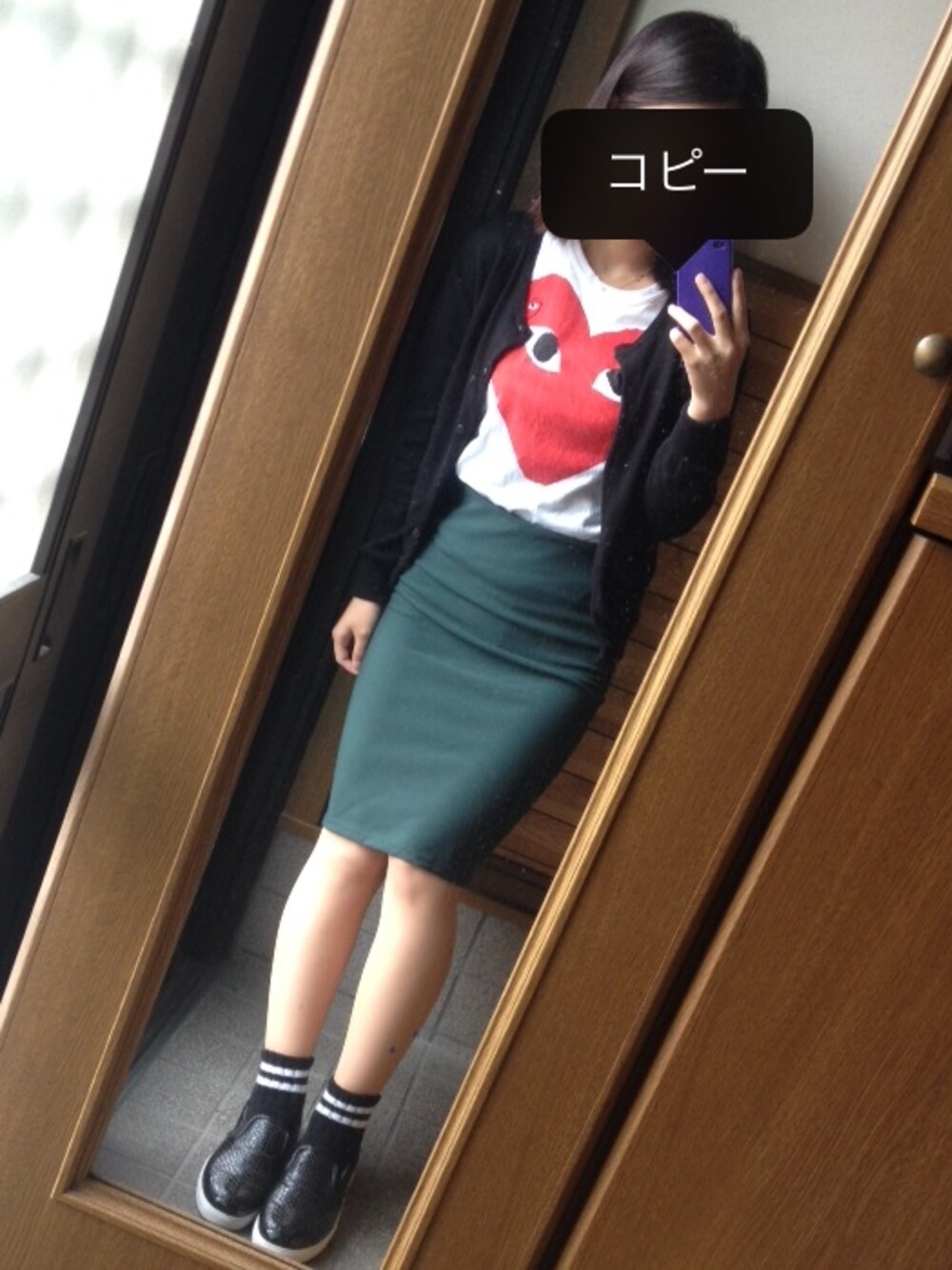 Tシャツ:ギャルソン カーディガン:TWNROOM スカート:GALLERIE 靴下:? 靴:?