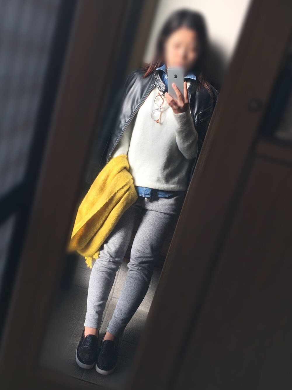 ジャケット:heaven and earth ニット:AZUL シャツ:NATURAL BEAUTY BEASIC パンツ:UNIQULO バッグ:COQULE マフラー:? 今日は忘年会! 地元の友達の焼肉屋やから楽ちんコーデ。