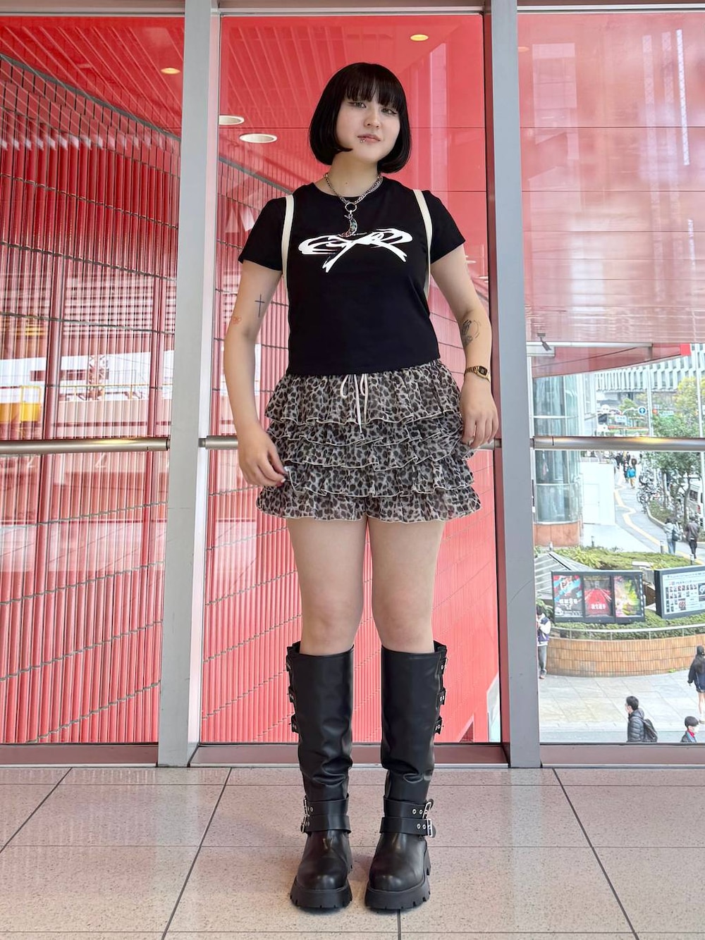 韓国ギャルコーデ🌟 レオパード×黒Tシャツ🐆🖤 こちらはパンツになっているので安心して履いていただけます🍀*゜
