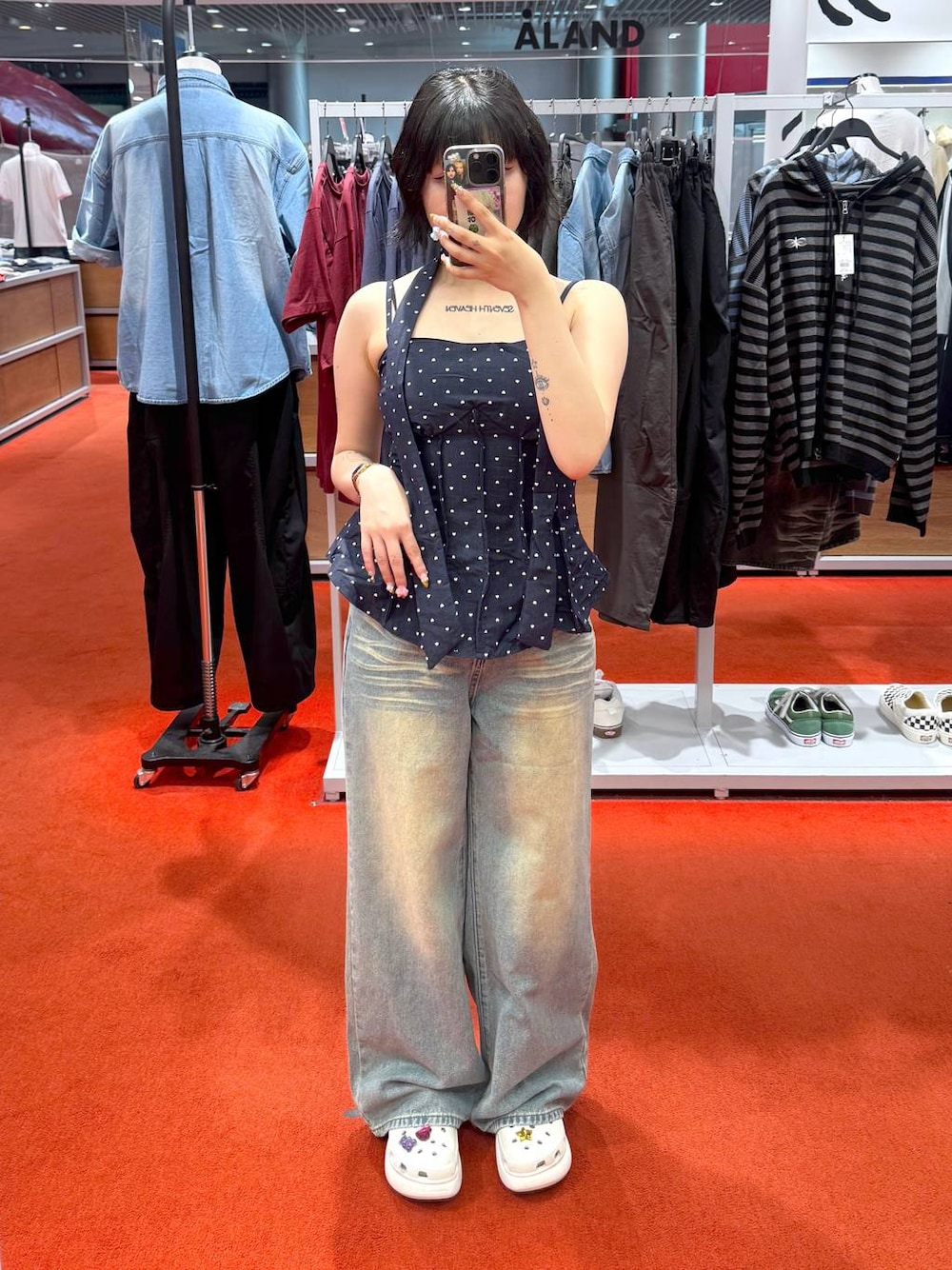 夏コーデ🌞🌴🌺✨ 人気のマフラー付きキャミソールとデニムで夏コーデ‼️ インナーにTシャツ着るのも🙆♀️