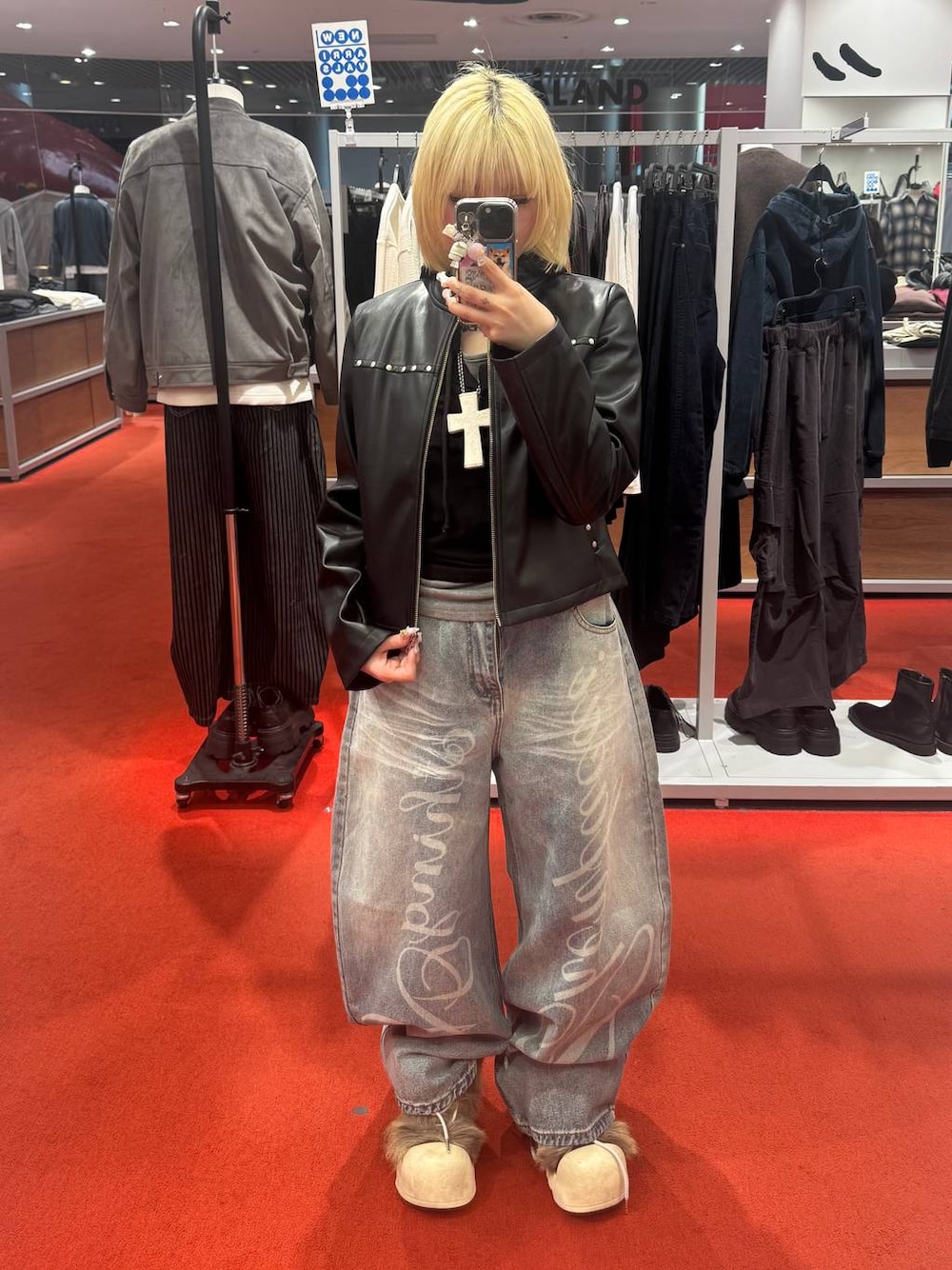 ストリートコーデ‼️ 春アウターに強めのレザージャケット! パンツは淡めで更に春らしく🌷🌸