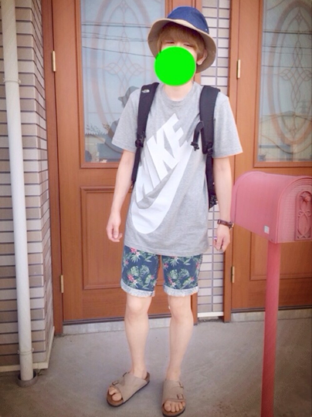 トップス:NIKE パンツ:g.u. リュック:THE NORTH FACE 13 Tシャツは 近くのスポーツ店で買いましたww サイズはこれでも Lサイズ...(´;ω;`) パンツは去年のg.u.で サイズはキッズの150ww