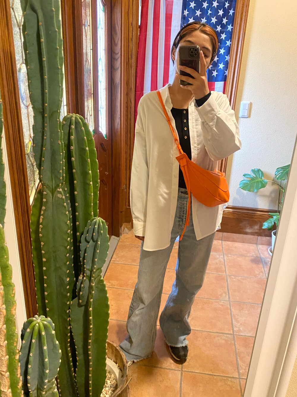 このしまむらのシャツまじで優秀すぎる! 中に着てるトップスは初のボディスーツに挑戦🤭 背中丸見えで可愛いけど毛に注意だよねん🥹