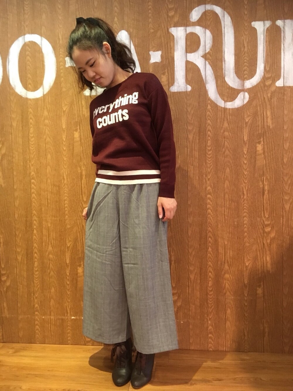 ご覧いただきありがとうございます😊 本日は、いつもキレイ目で履いているワイドパンツをカジュアルに着てみました😃✨ ボルドーカラーを着ると一気に秋らしくなりました😆