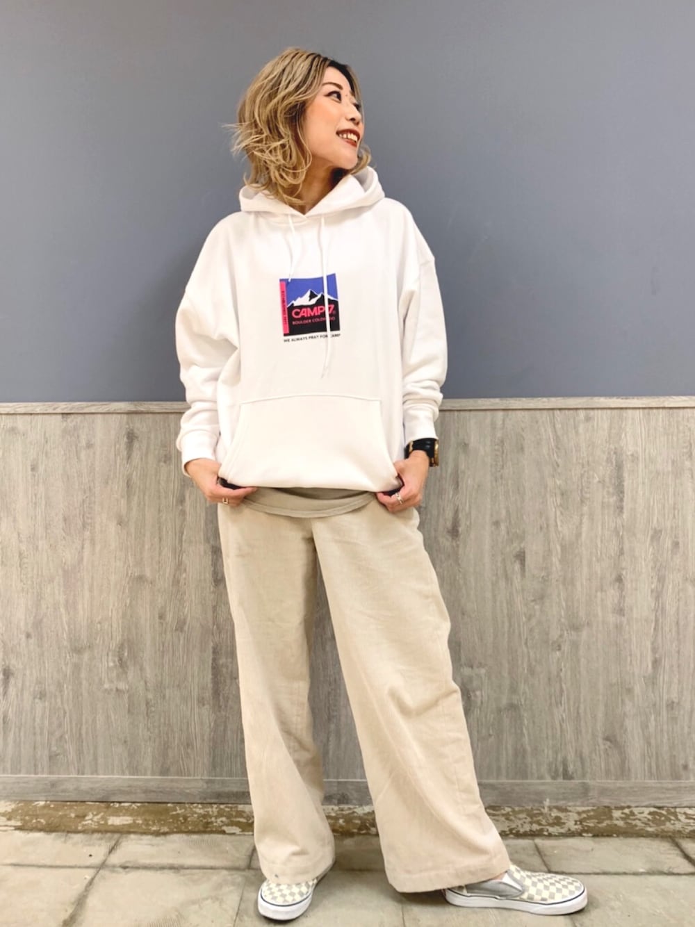 ⭐️本日の私のオススメ⭐️ #camp7 ♢ボックスロゴプリントパーカー ¥6.000+税 ♢3色展開♢サイズM・L‼︎ ♢163㌢Lサイズ着用 ♢CP42240008 ホワイト 肌触りも気持ちよく、裏地は裏起毛になっています☺︎ 今からの時期にピッタリ☺︎ だんだん寒くなってきているので、この1着あればホッコリお洒落を楽しめますよ☺︎☺︎ バックプリントもインパクト大でお気に入りなので、是非ご覧になってくださいね☺︎☺︎ #RAG MACHINE ♢ワイドコーデュロイイージーパンツ ¥4.000+税 ♢3色展開♢サイズM・L‼︎ ♢163㌢Mサイズ着用 ♢RM42220003 オフホワイト 程よい股上で程よいゆとり‼︎ ウエスト周りゴムになっているので細身のトップスもインしやすいです☺︎ 全体的にストレッチで動きやすいのですよ☺︎☺︎