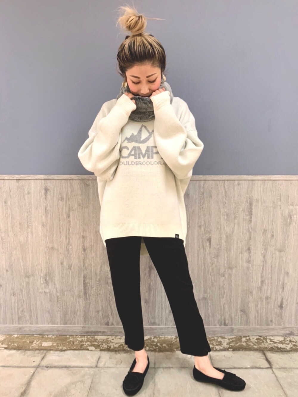Naaachiのニット/セーター「【CAMP7】マウンテンロゴニット」を使ったコーディネート