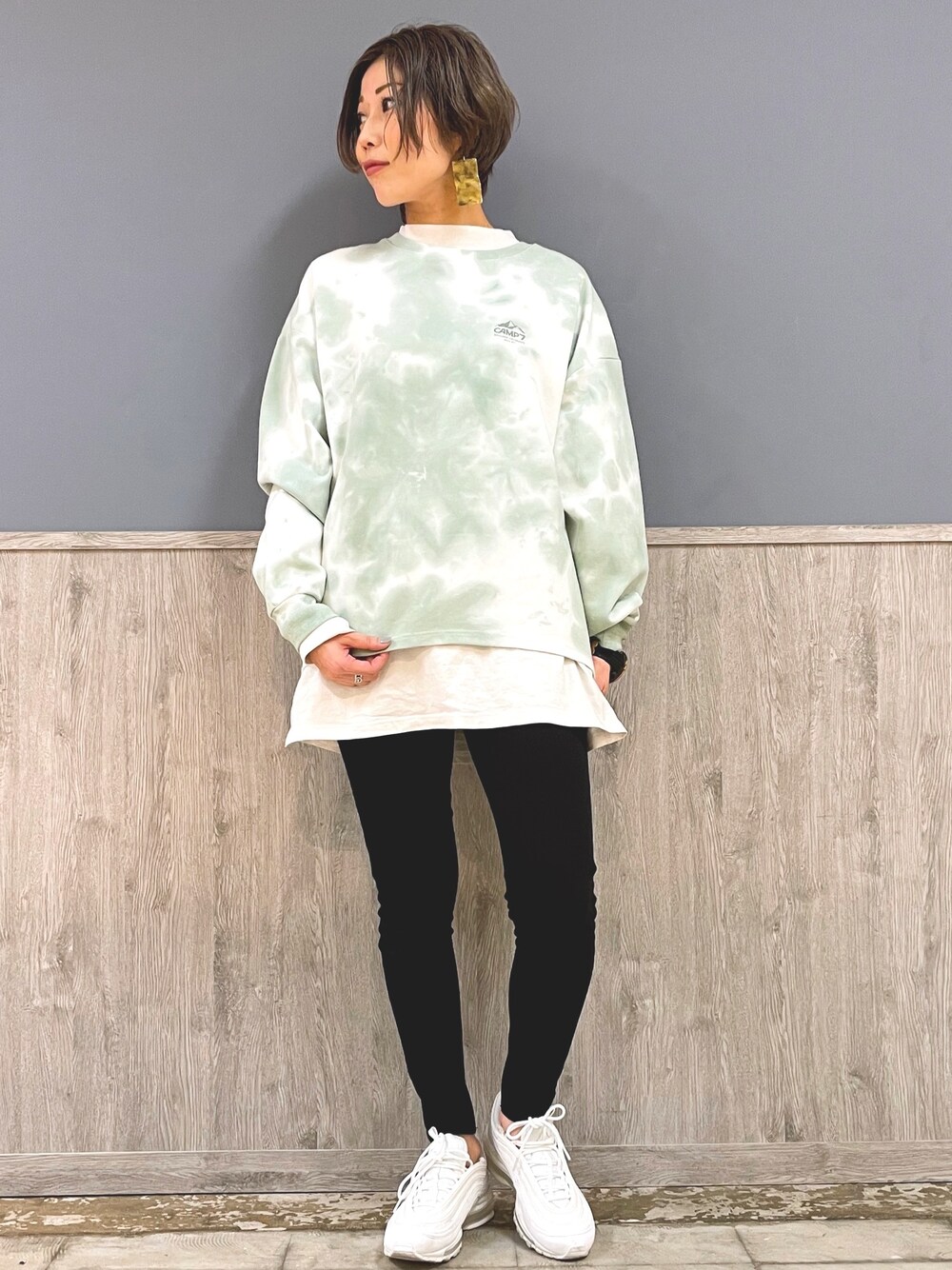 大好きなタイダイコーデ❤️ CAMP7 ♢ タイダイ柄ロゴトレーナー ¥4,000(4,400税込み) 派手すぎない馴染みやすいです☺︎ 軽い着心地・肌にも優しめ☺︎ 前後の丈間がスッキリ&安心感☺︎ 是非TOPのURLよりチェック👀✨してみて下さい‼︎ それでは、皆さん今日も1日お疲れ様でした😴