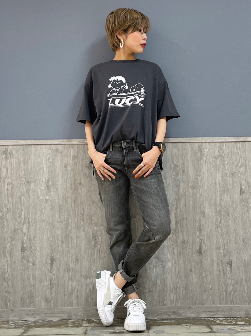 プリントTシャツコーデ⭐️⭐️ men'sアイテム着用‼︎✨ 1枚でも目を引くスヌーピーのTシャツ🧡🧡くすみカラーも絵柄もとても可愛いくレディースが着てもバッチリ👌✨ ブルーデニムやスカートとの相性も勿論です😃😃 沢山の夏のTシャツコーデを楽しんで見てください🧡 そして、G-Star RAWからの「ARC」3Dボーイズフィットデニム👖 定番のデニムとの差を少し楽しみたい方にお勧めの1本です🥰🥰 硬すぎず柔らかすぎない履き心地🙂🙂 程よいゆとりに、程よい股上が、可愛さとカッコ良さを演出してくれます😍 そして、絶妙な色合いがまたカッコ良く目を惹く⭐️⭐️⭐️ オススメのデニムもお試しください🧡🧡